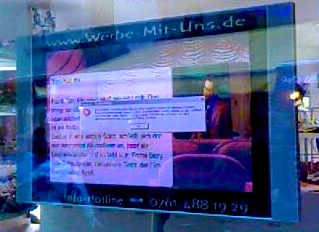 In etlichen Schaufenstern in Freiburg findet man mittlerweile diese Flachbildschirme mit allerlei Werbung. Ob Windows zum stabilen Betrieb geeignet ist darf offensichtlich angezweifelt werden. Gefunden am Freitag beim Bermudadreieck. Wahrscheinlich war der Rechner also betrunken …