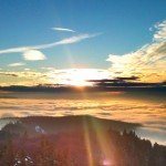 Und: über Freiburg. Die Stadt lag nämlich heute nicht komplett unter einer Wolkendecke. Der Schauinsland samt dazugehörigem Turm hat oben rausgeguckt. Und ich auch. Das sah dann so aus: