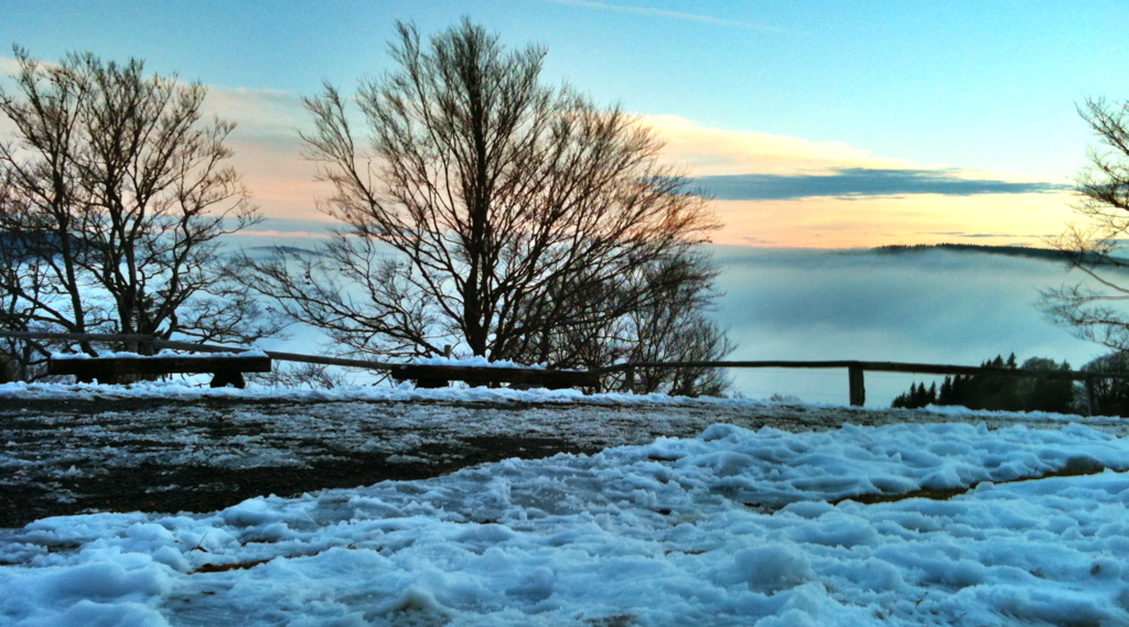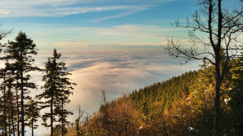 Alpensicht war übrigens auch, aber nicht mit der iPhone-Kamera. Eiger (logischerweise die berühmte Nordwand…) und Jungfrau waren deutlich zu erkennen. In der anderen Richtung schaute nur ab und zu eine Spitze der Windräder an der Holzschlägermatte aus dem Dunst. Und über allem: stahlblauer Himmel mit ein paar Wolkenstreifen, dazu eine herrlich frische Luft. Einfach toll.